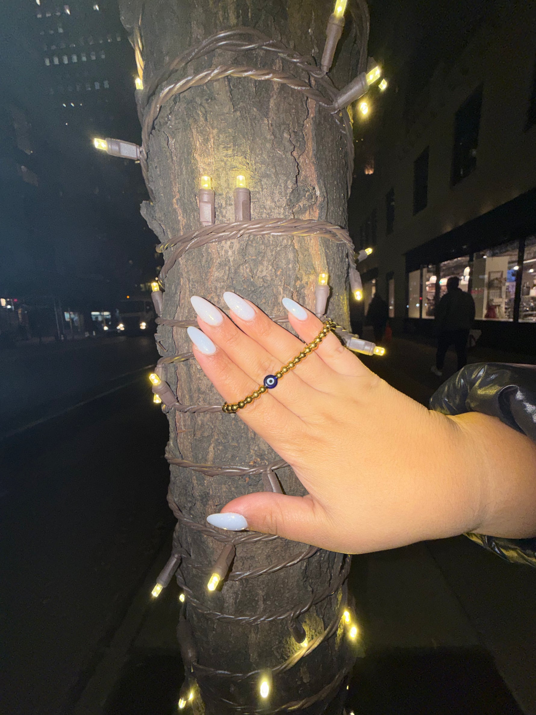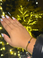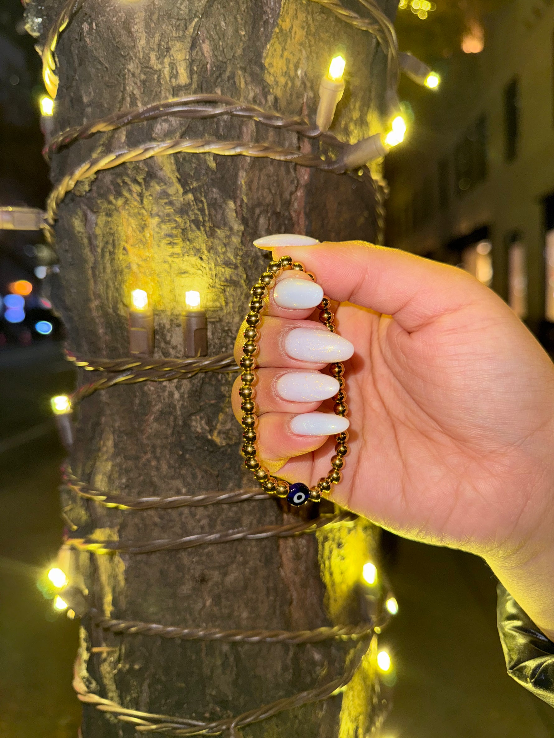 Carry protection and style wherever you go. The Eye Bead Bracelet blends sleek gold-plated beads with the symbolic blue eye centerpiece — a timeless charm believed to shield against negative energy while adding a touch of everyday shine. Designed for effortless wear, it’s the perfect stackable piece that matches any vibe.