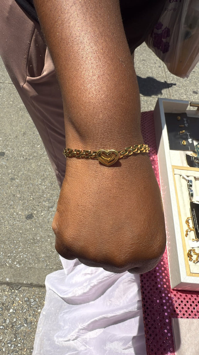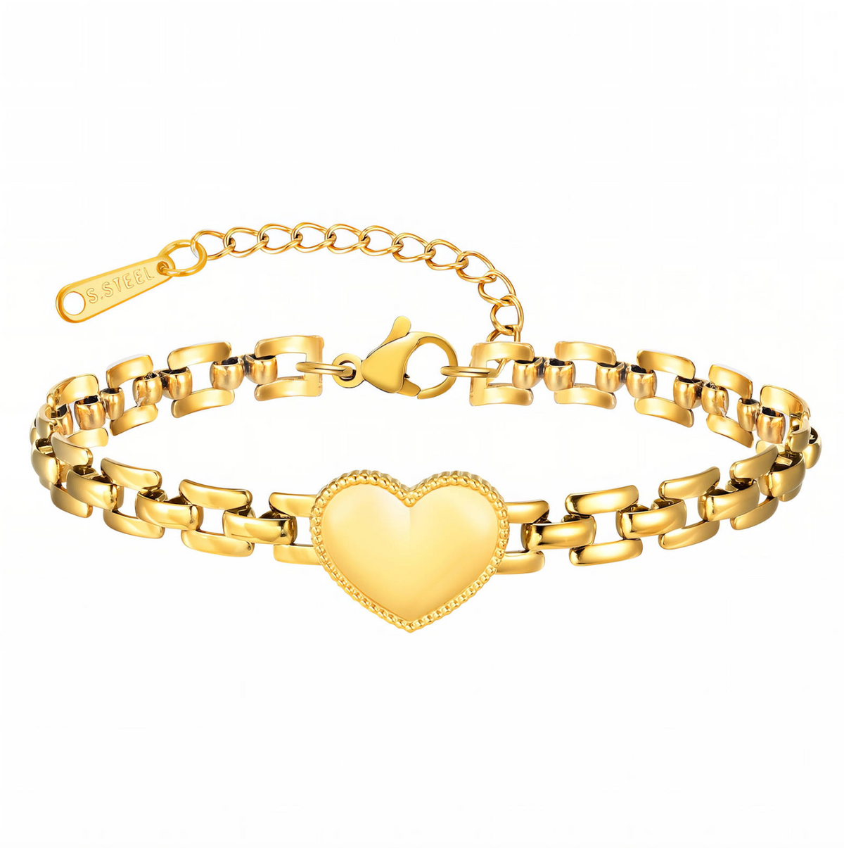 The Heartlock Bracelet is all about connection, strength, and style. Designed with a bold gold link chain and a sleek heart centerpiece, it symbolizes love that lasts — whether it’s for yourself or someone special. Its modern shape and smooth finish make it a standout piece that’s perfect for stacking or wearing solo.