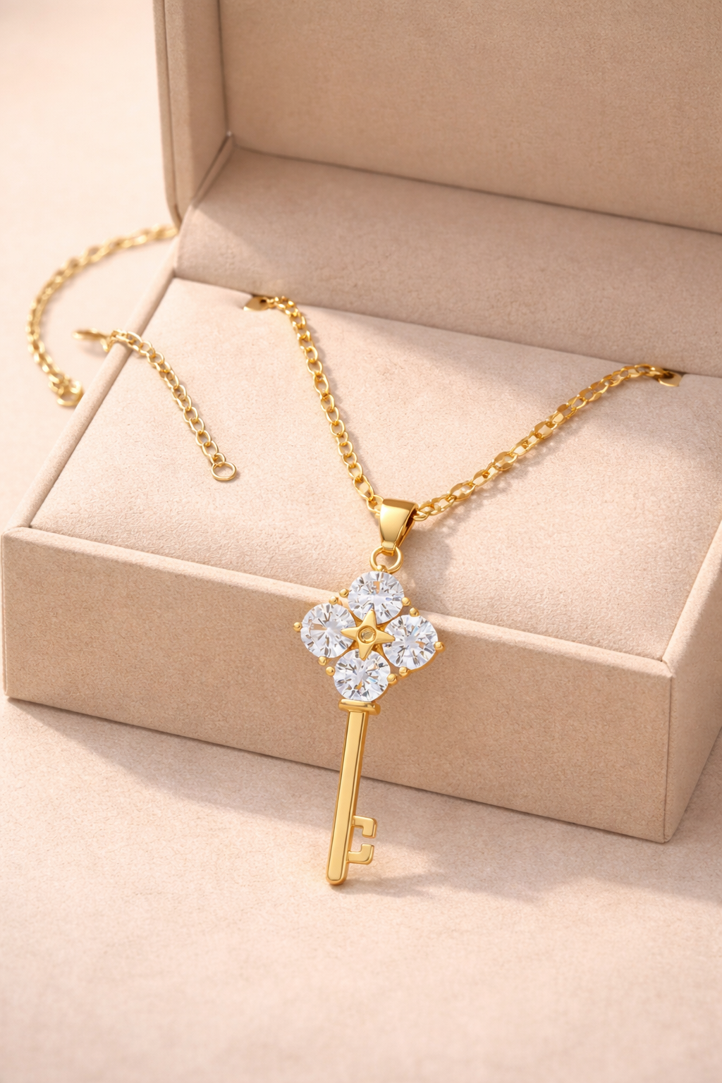 Unlock your light with the Magic Key Necklace — a symbol of confidence, hope, and endless possibilities. Featuring a sparkling key pendant adorned with cubic zirconia stones and a star-shaped center, this piece represents new beginnings and the power to create your own path.