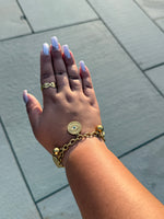 A modern charm-link design on stainless steel with 18K gold plating. The eye and hamsa silhouettes are detailed with cubic zirconia for a clean, reflective pop. Built for daily wear—waterproof, hypoallergenic, and tarnish-resistant—with an adjustable fit for easy stacking.