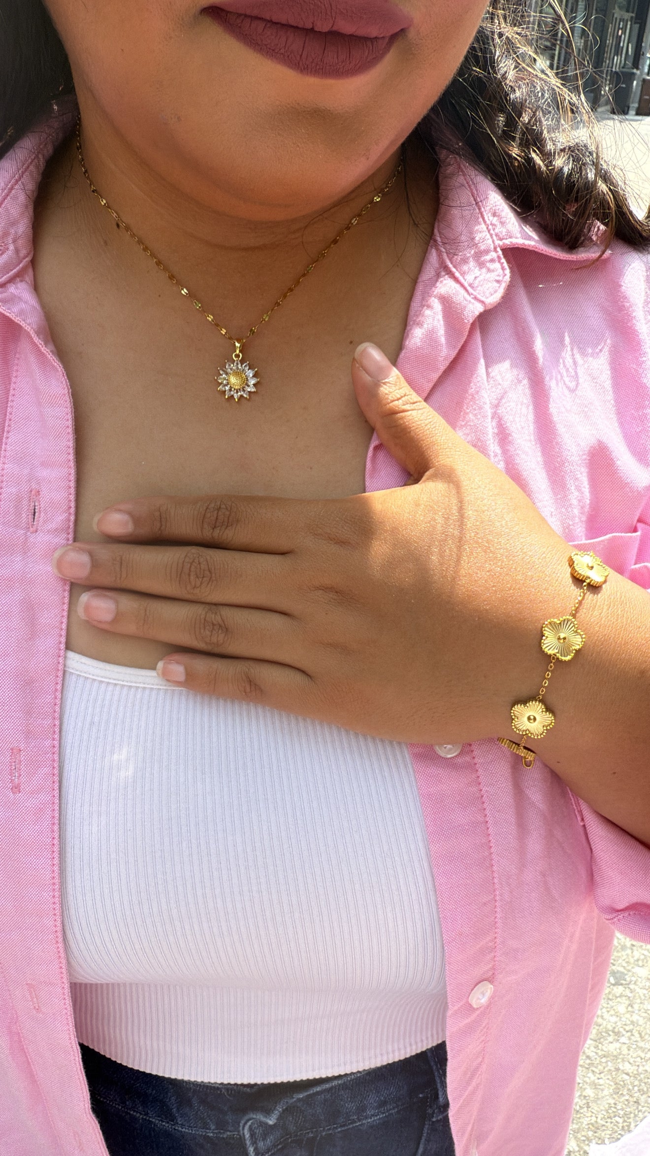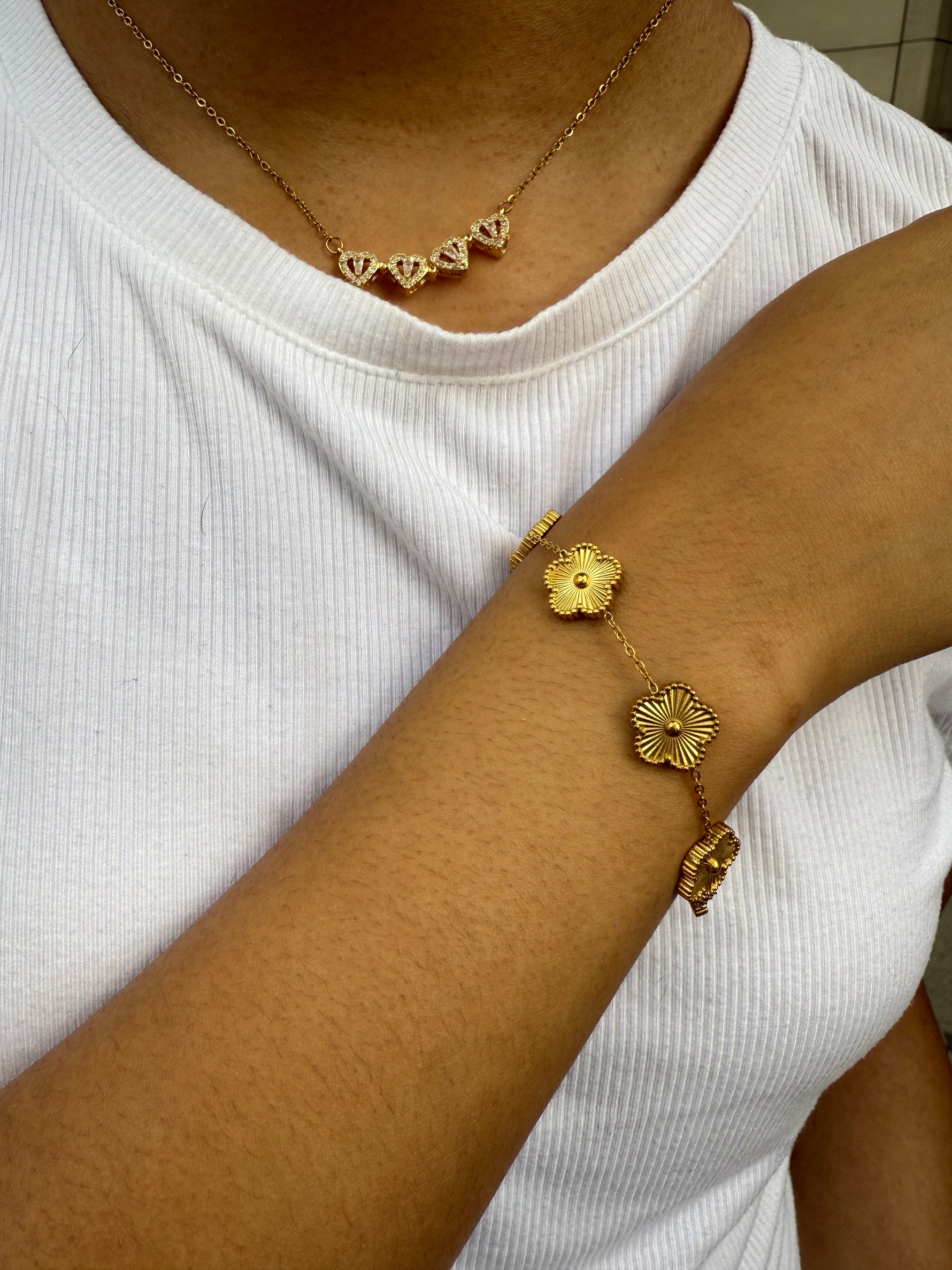 The Bloom Flower Bracelet brings bold floral detail together with a polished gold finish for an elevated everyday look. Designed to stand out while staying effortless, this piece adds a confident touch whether worn solo or layered with your favorite bracelets.
