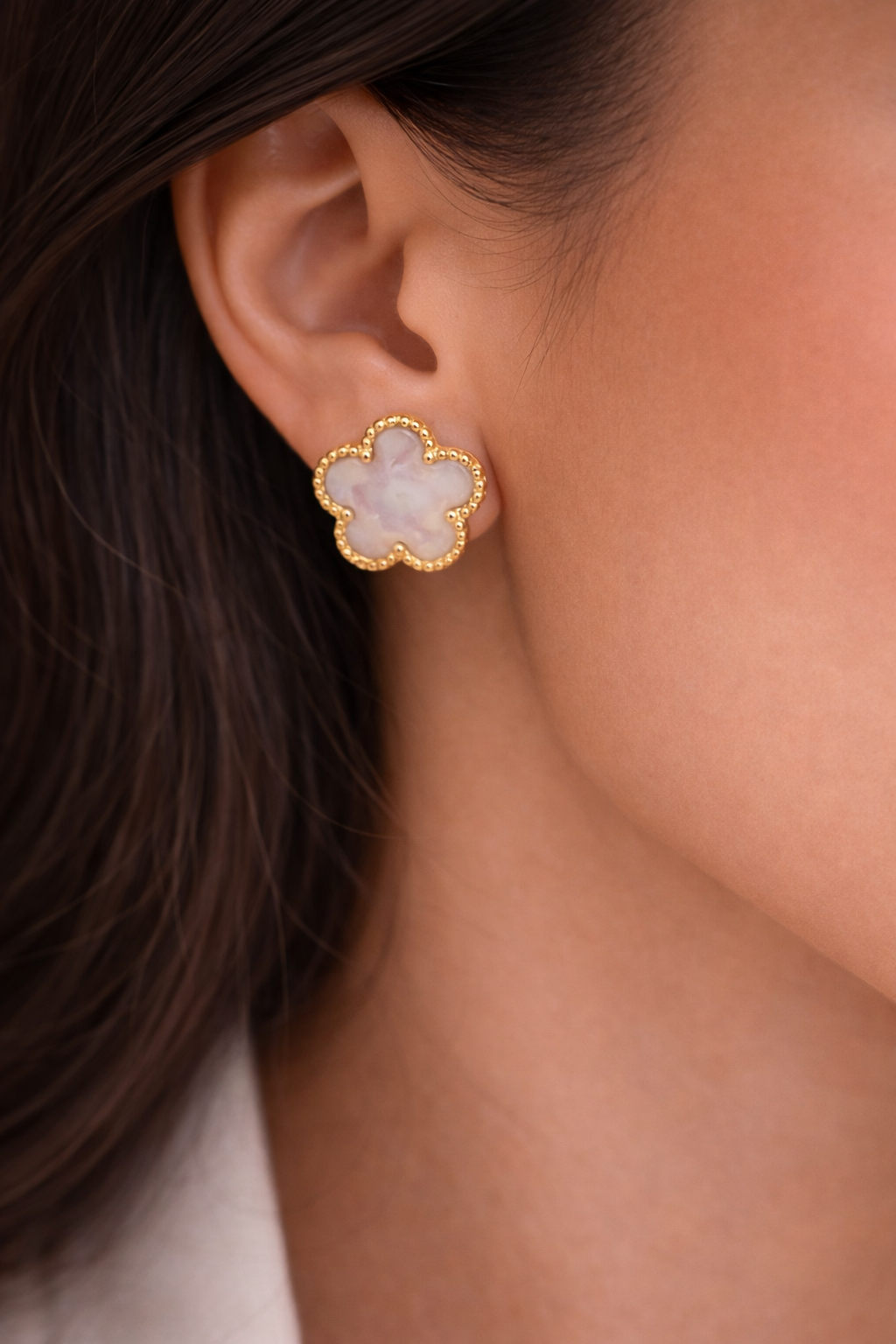 Designed as lightweight stud earrings, they add subtle shine without overpowering your style. The neutral pearl tone makes them incredibly versatile, pairing effortlessly with everyday outfits as well as more refined looks.
