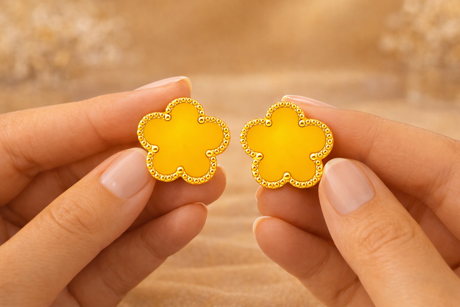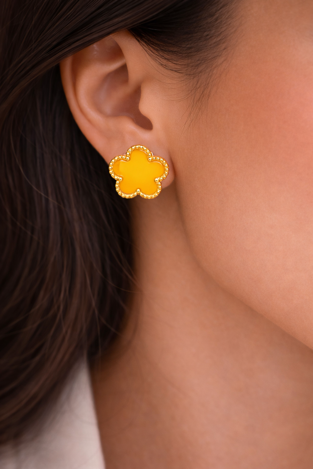 Designed as lightweight stud earrings, they add a cheerful pop of color without feeling heavy. The sunny yellow tone makes them perfect for everyday styling, adding warmth and brightness to both casual outfits and dressed-up looks.