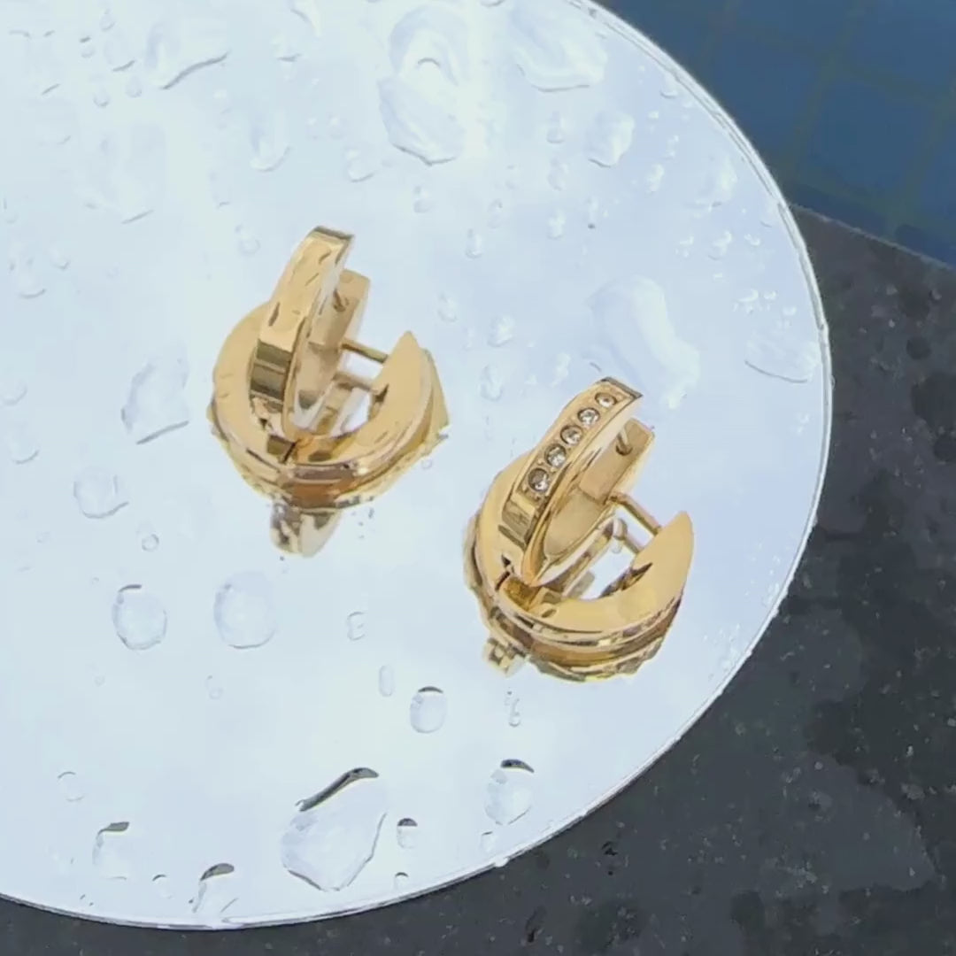 Built with stainless steel and finished in long-lasting gold plating, the Halo Set Hoops are fully waterproof and hypoallergenic. Made to resist tarnishing and fading, they’re a reliable go-to for daily wear without sacrificing style.