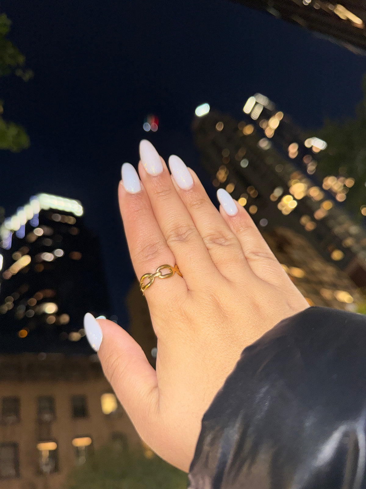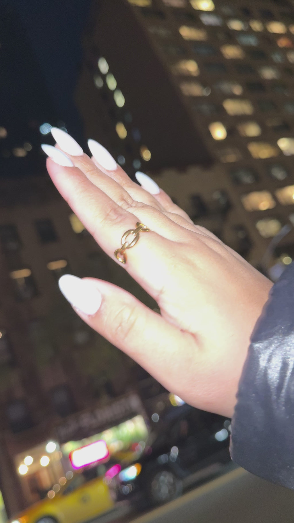 The Linkora Ring embodies strength and style — a bold chain-link design that balances edge with elegance. Its open, sculpted shape adds dimension and shine, making it the perfect statement piece for any look.