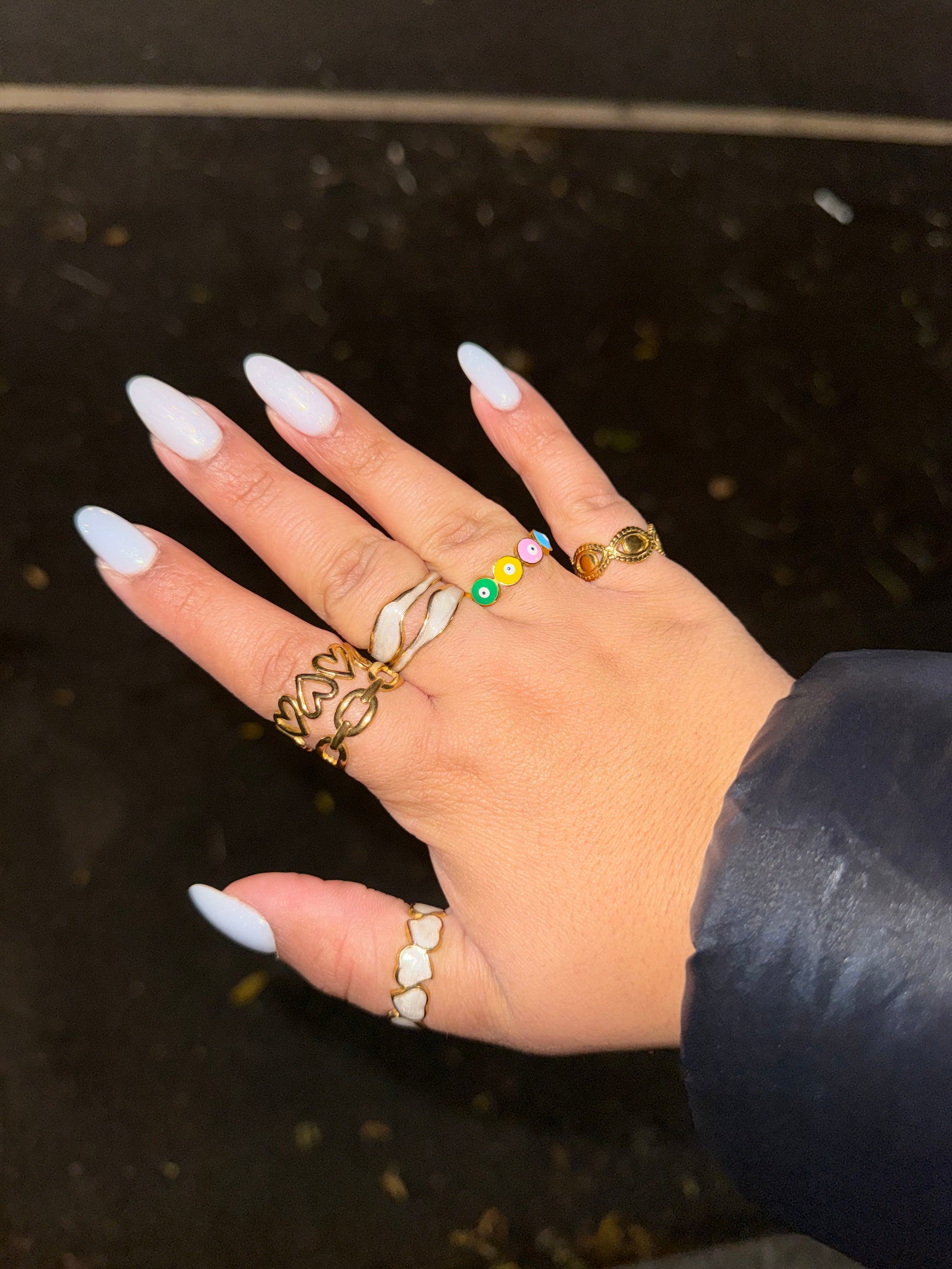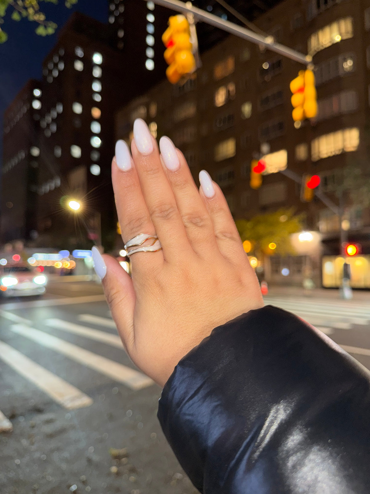 The Veyla Ring is modern minimalism with a touch of oceanic flow — a sculpted design that moves like liquid gold around your finger. Its fluid curves and glossy pearl-white enamel create a statement that feels both effortless and bold.